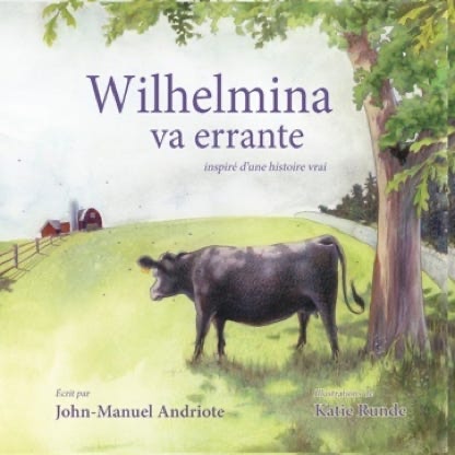 English: Wilhelmina Goes Wandering is based on the true story of a runaway cow in Connecticut. For five months in 2011, the 800-pound Black Angus was seen around Milford, Orange, and New Haven, hanging out and traveling with a herd of deer. When she is eventually captured and relocated to an animal sanctuary in Oxford, Wilhelmina finds that her urge for adventures has been tamed by knowing she is finally accepted and loved by her new farmer friend Betty. Along the way, our bovine heroine learns about accepting the things about herself that are different from the deer--and that sometimes we have to leave our familiar pasture to find our true home. Five- to nine-year-old readers (grownups, too!) will fall in love with Wilhelmina and her animal and human friends, brought to colorful life in Katie Runde's lovingly rendered watercolor illustrations.