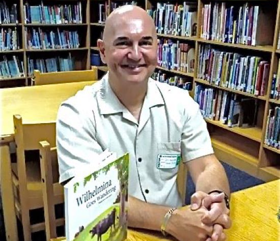 John was named Calf Pen Meadow Elementary School's "Favorite Author" and reads Wilhelmina Goes Wandering to the assembled students and teachers.